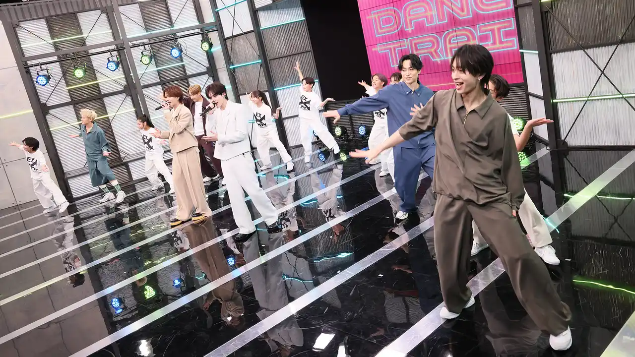 ダンスレッスンを行うEXILE B HAPPYは、EXILE TETSUYAをリーダーとして、ヴォーカルに吉野北人(THE RAMPAGE)、中島颯太(FANTASTICS)、パフォーマーに小森隼(GENERATIONS)、浦川翔平(THE