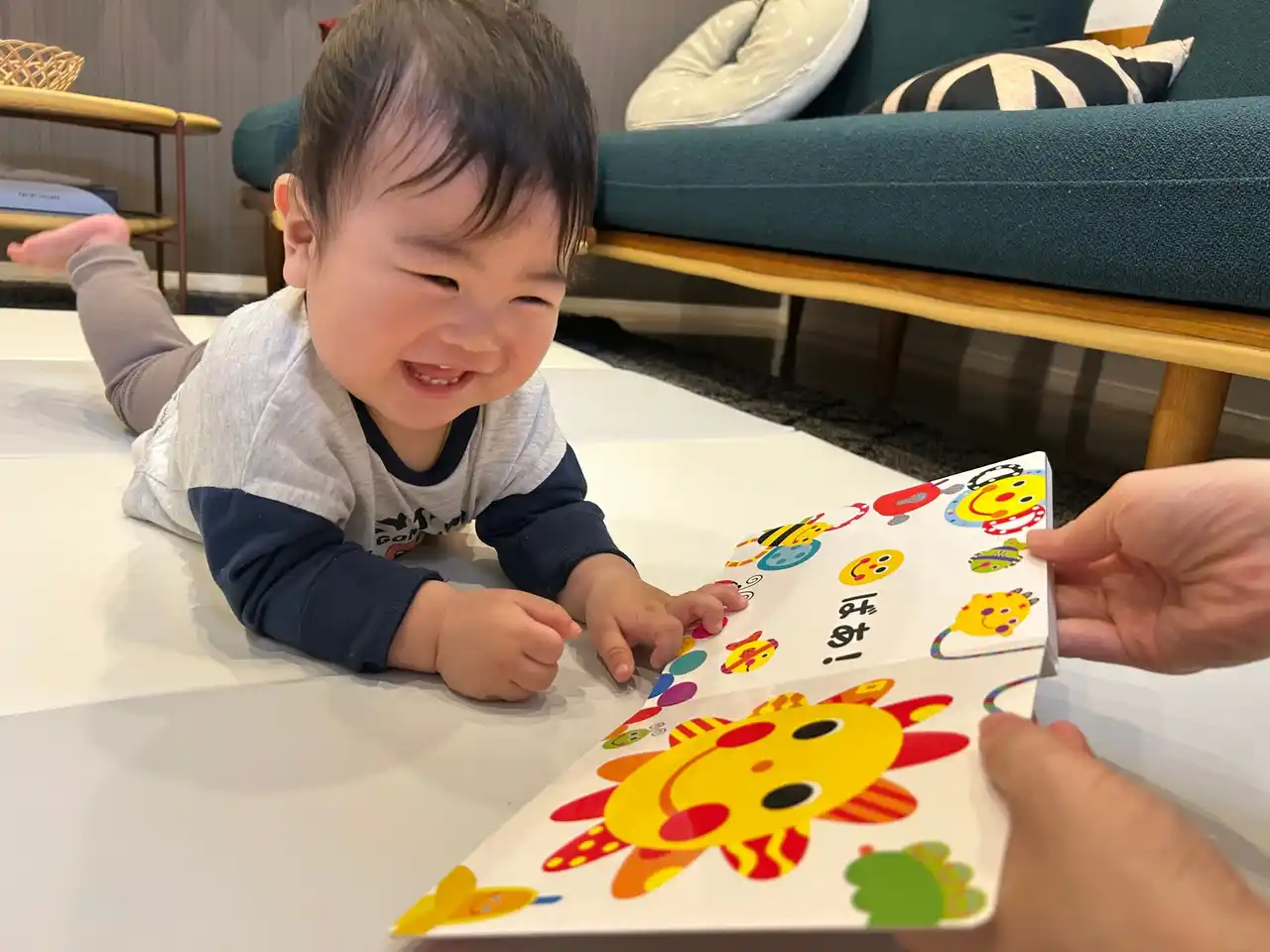 「興味津々で、小さな手で次のページをめくろうとする姿がとてもかわいかったです」 |