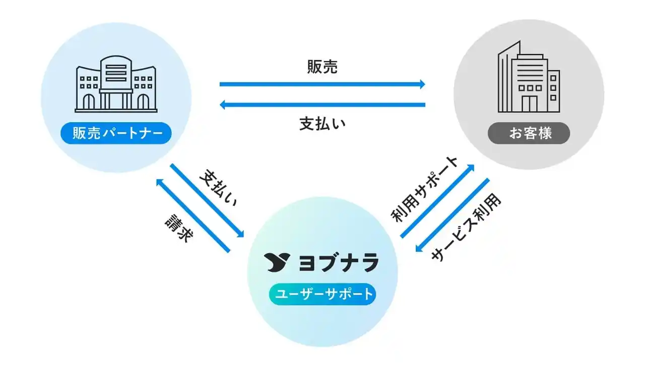 こうして築いてきたネットワークを活かし、これらの事業者を「販売パートナー」として位置づけ、自社の販売形態に合わせてヨブナラを提案・提供できる販売パートナー制度を新たに開始します。 |
