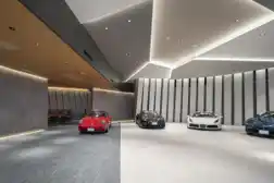 天井と壁を7枚の大きなパープルの“スキン”でシームレスに連続 |