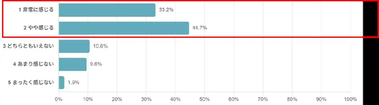 長期休暇明けに「やる気が出ない」「気持ちが落ち込む」と感じる人は77.9%と約8割にのぼりました。一方、「あまり感じない」「まったく感じない」は11.5%にとどまり、休暇明けは気持ちの切り替えが難しいと感じる人が多いことが示されています。 |