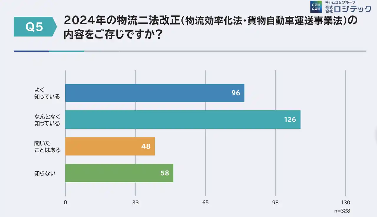 物流関連法改正について「内容は理解している」と回答した企業が一定数ある一方で、実際に契約管理や業務フローへ反映できている企業は限られていることが分かりました。制度の認知は進んでいるものの、「どこから着手すべきか分からない」「既存業務を変えられない」といった理由から、実行段階で足踏みしている企業が多い実態が浮き彫りになっています。 |