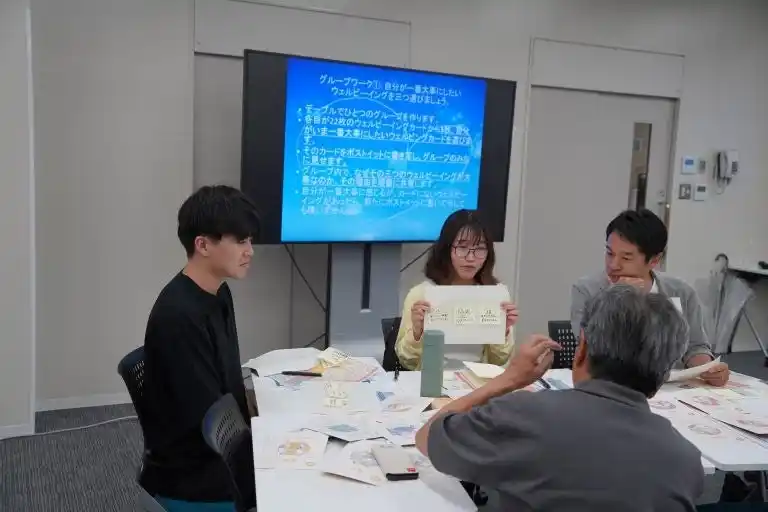 最後のグループワークでは、ウェルビーイングカード22枚を使って、「私のウェルビーイング」と「あなたのウェルビーイング」を共に設計、デザインすることを経験しました。 |