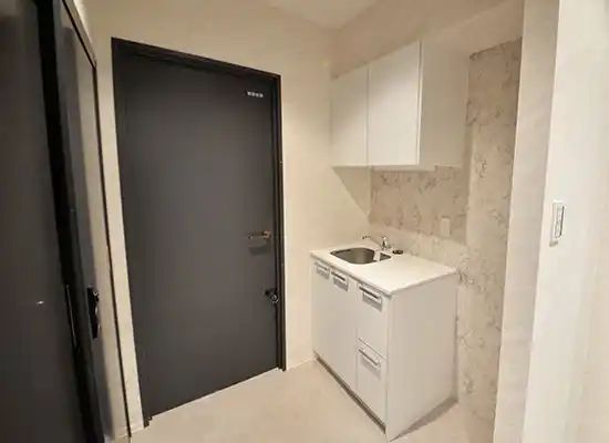 各フロアに備えたミニキッチンと備蓄倉庫 |