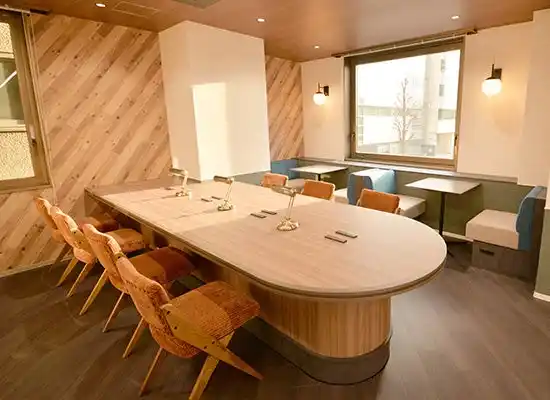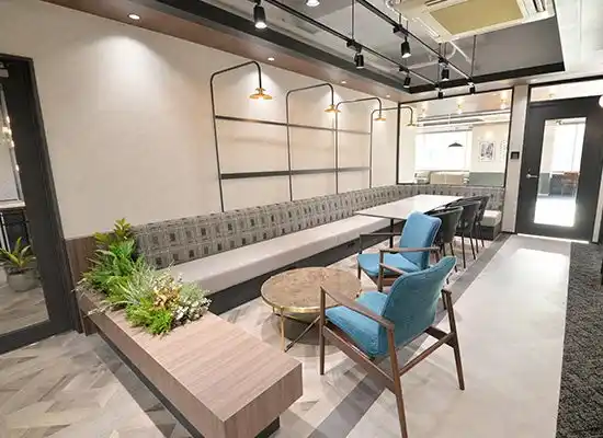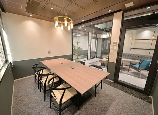 全フロアに会議室やラウンジ、テレカンブースといった業務に必要な基本機能を整備し、さらに、6階、9階の執務室には、デスク・チェアを設置しました。入居企業の皆さまは、内装工事やレイアウト設計を行うことなく、入居後すぐに業務を開始できる点が当オフィスの特長です。また、必要以上に造り込まないことで、企業規模や成長フェーズに応じて柔軟にお使いいただくことを可能にします。 |