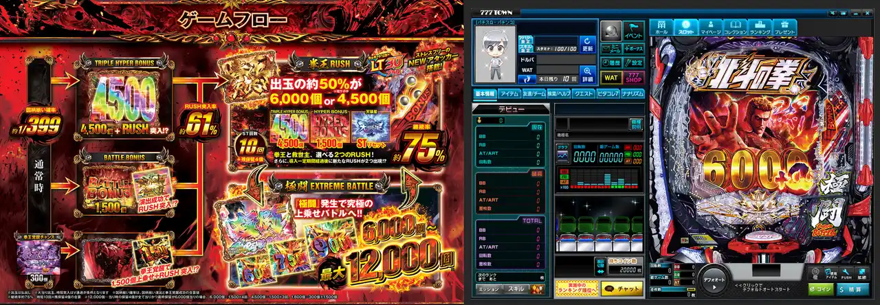 暴凶星の潜在能力のすべてを開放。大当たり出玉6,000個~最大12,000個の極限へ至る出玉性能を誇る「極闘」も忠実に再現! |