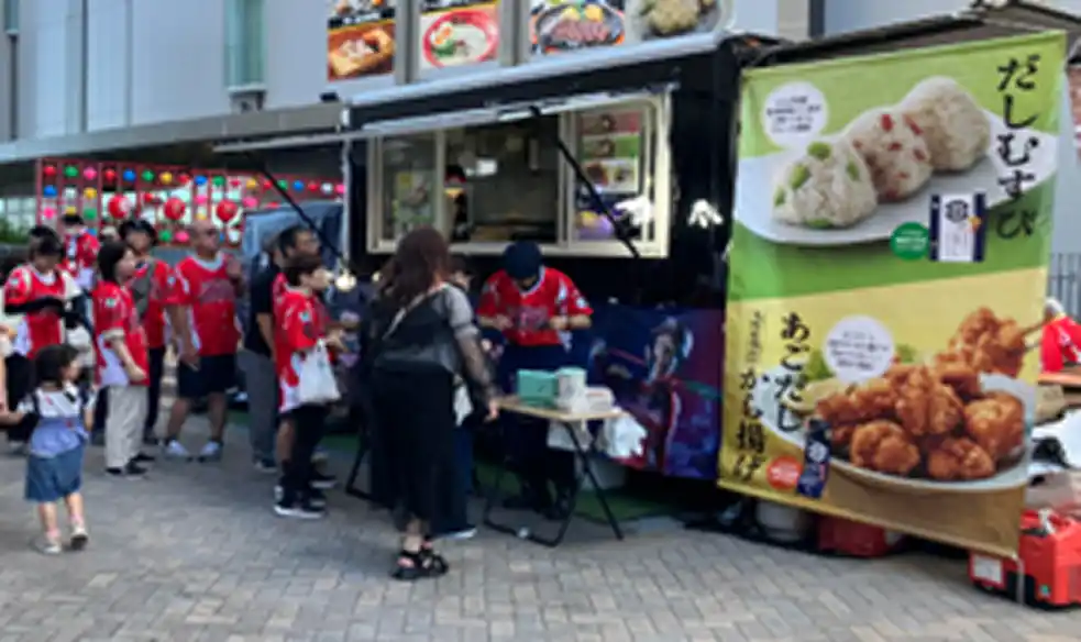 かねてより久原醤油では、流通店舗だけでなく「くばら」ブランドと生活者との接点をつくるべく、イベントや催事を行ってまいりました。2025年には、みずほPayPayドーム福岡にて「あごだしのくばら」キッチンカーを出店し、その名の通り「あご=トビウオ」のおいしさを活かしたメニューをご提供することで、ご来場の方々より多くのお喜びの声や商品へのアイデアをいただくことができました。 |