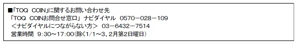 「TOQ COIN」で貯めたコインからTOKYU POINT、TOKYU POINTからコインへの交換はできません。 |