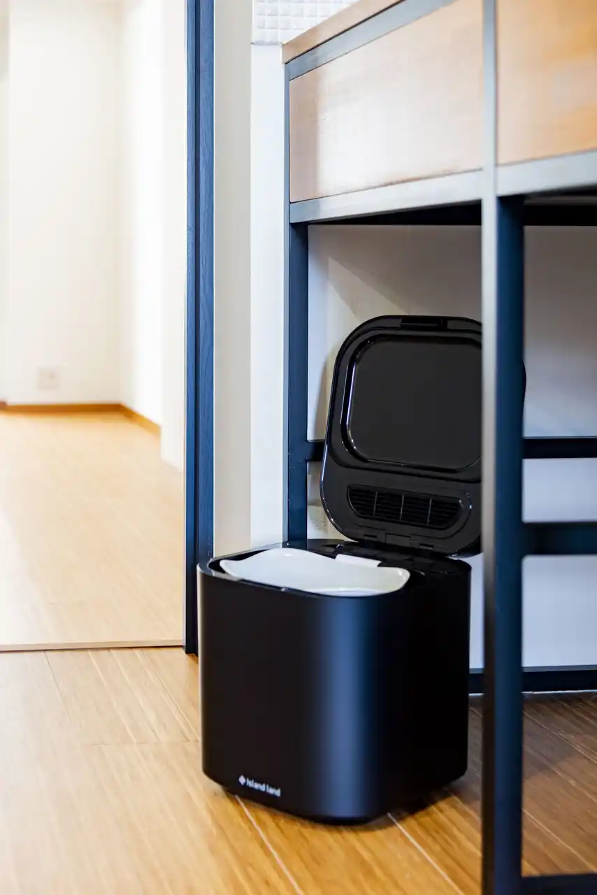 生ごみを乾燥してかさを減らすことで、ゴミ袋の使用量とごみ出し頻度を抑えられます。さらに乾燥後は堆肥として活用し、入居者の皆さまに「人と地球にやさしいリジェネラティブな取り組み」への参加を促します。 |