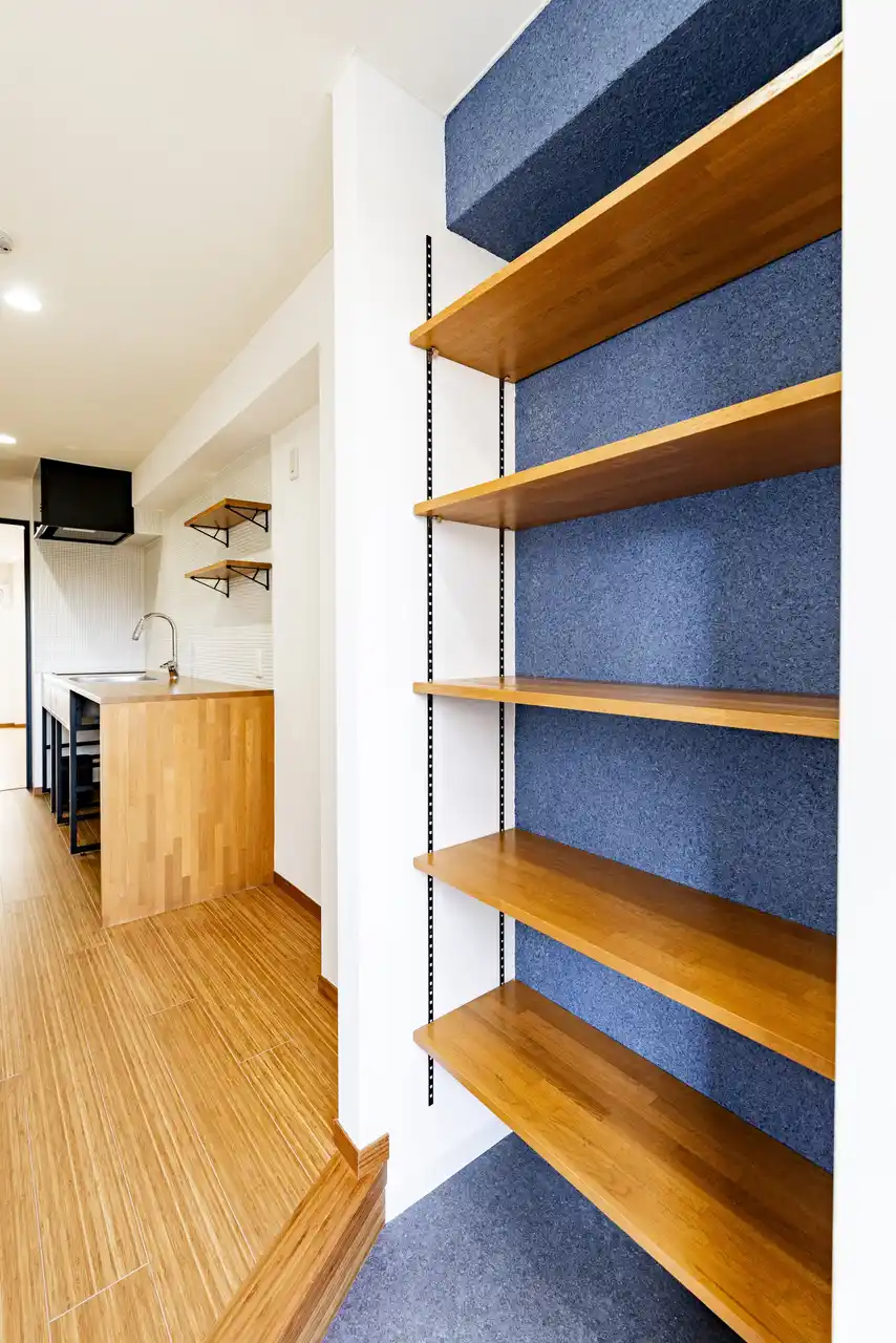 デニム端材をアップサイクルした循環型左官材「塗るデニム(NURUDENIM)」と、卵殻など自然素材を活用した「エッグペイント」を採用。調湿・脱臭や化学物質の吸着効果が期待できます。 |