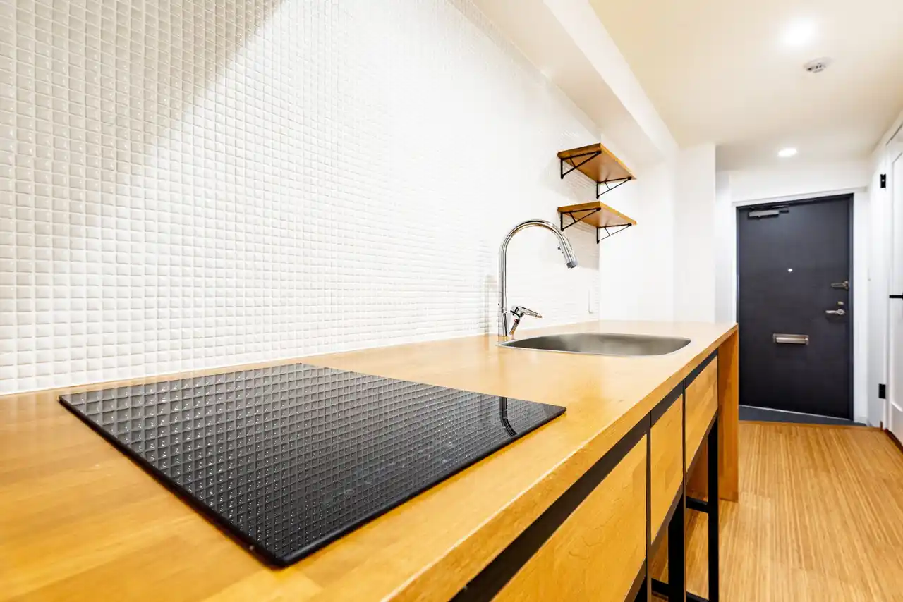 国産木材を活用することで、林業振興と輸送に伴うCO2削減に貢献します。調湿効果も期待でき、木のぬくもりと経年変化を楽しめるキッチンです。 |