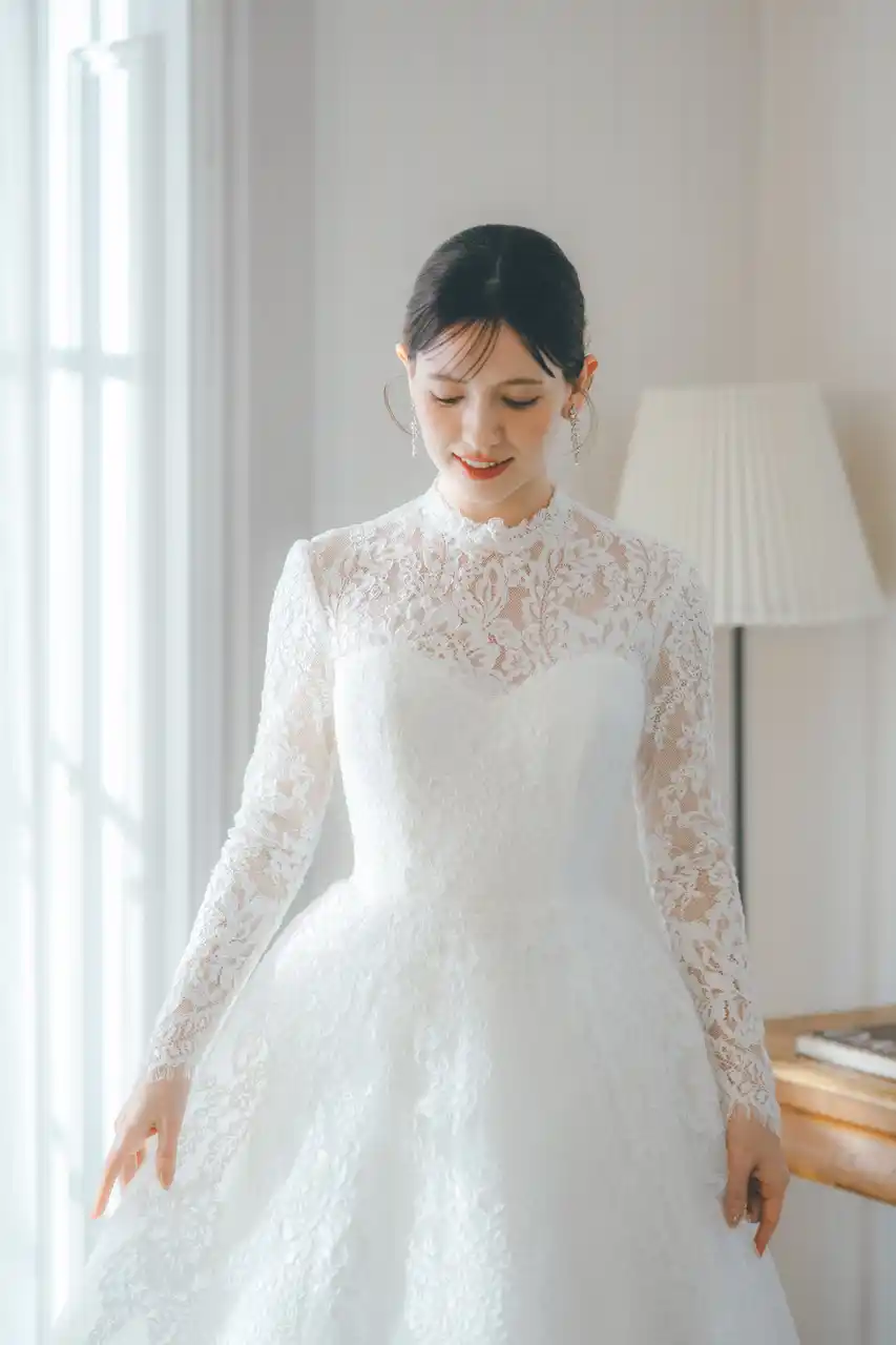 贅沢に360°レースを使用した、優雅で格式高いデザインが印象的なドレス。高めのネックラインはよりクラシカルで上品さを演出し、思わず目を奪われるような優雅なデザインに仕上げています。 |