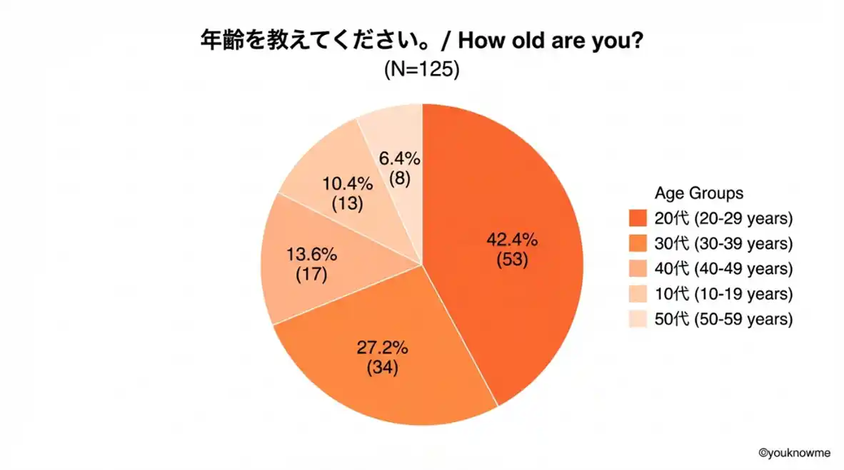 年齢層は、20代(42.4%)、30代(27.2%)となっており、若年層が多いことが分かりました。 |