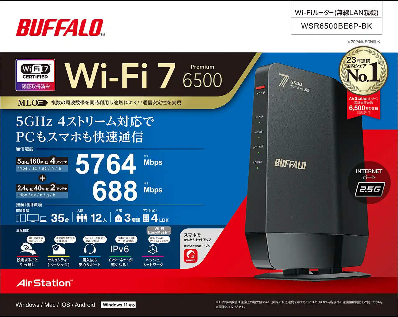 株式会社バッファロー(本社:東京都千代田区、代表取締役 社長執行役員CEO:牧 寛之)が製造・販売する、Wi-Fi 7に対応するデュアルバンドWi-Fiルータープレミアムモデル「WSR6500BE6P-BK」が、「こだわり楽しむ、モノ選び」をコンセプトに、あなたのライフスタイルに寄り添う商品を日々調査するPicky's編集部が1年を通じて出会った至高の逸品を集めた祭典「Picky'sアワード 2025(主催:株式会社FUNDiT)」の「PC・周辺機器 ルーター部門」にて受賞しました。 |
