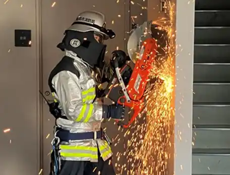 | 両機関の各部隊は、各々の訓練目的に即した、火災等活動時におけるエンジンカッターでのドア破壊訓練、倒壊した建物内からの孤立者救助訓練、機材の習熟訓練等に熱心に取り組まれました。 | |||||||||