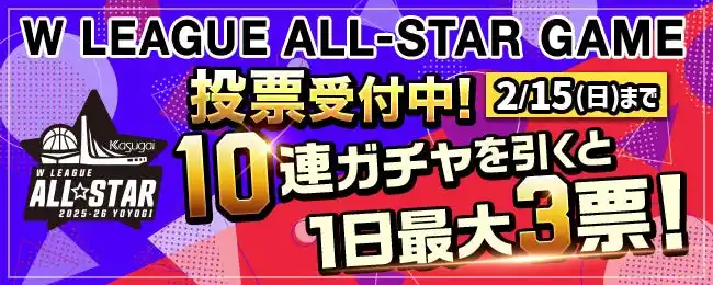 春日井製菓 presents Wリーグ オールスター総選挙 2025-26 in 代々木 ファン投票受付中 |