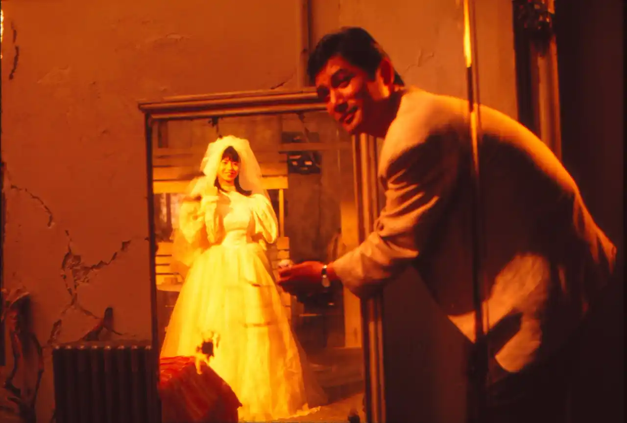 北陸線で列車事故が起きた。入院中の田浦修司(細川)は、収容しきれない負傷者をさばくため、一夜だけ他の患者との同室を頼まれる。それは骨折した女性だった。つい立てを挟み、お互い顔が見えない二人は、ふとしたことから言葉だけのセックスをしてしまう。翌朝、看護婦がつい立てを払うとベッドにいたのは白髪の老女だった。退院後、田浦のもとに老女から電話が入り、それを拒否する田浦だったが、彼女は彼を待ち伏せていた。だが待っていたのは老婆ではなく、四十ぐらいの色気をたたえた魅力的な中年女性だった。その女性睦子(石田)と田浦はホテルで一夜を過ごすが、翌朝彼女の姿はベッドになかった。 |