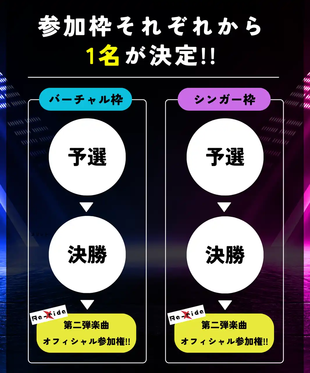 | 本オーディションは、VTuber・Vライバーなどのバーチャル活動者と、シンガー・声優・アイドルなどの顔出し活動者の双方を対象に、新たな才能を発掘し、コラボした作品を世に送り出すことを目的としたプロジェクトです。 | ||||||