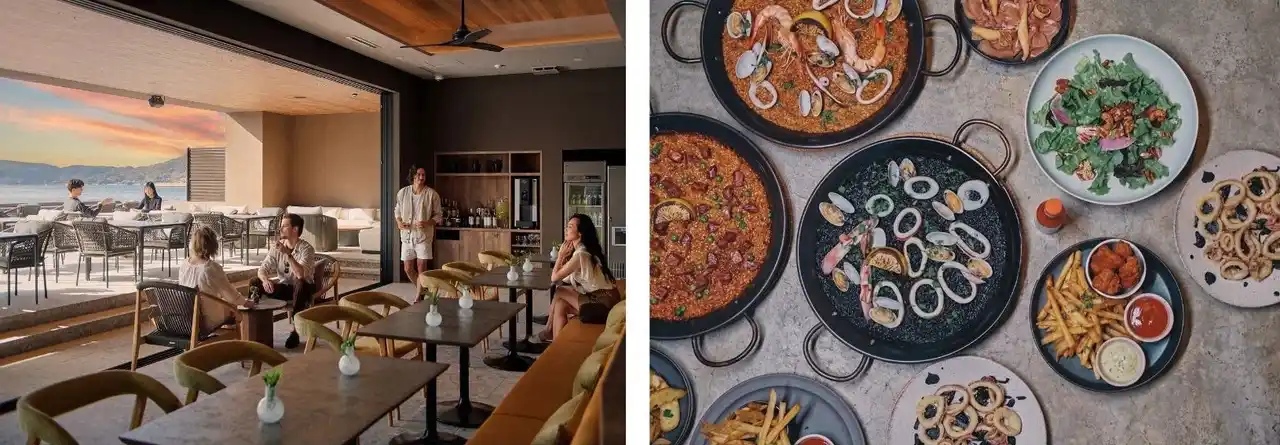 ■レストラン「Restaurant eden SETOUCHI」 朝食からディナーまで提供する「Restaurant eden SETOUCHI」では、小豆島の旬の魚介や島野菜、オリーブ牛、オリーブハマチなど、島の風土に根ざした食材を生かし、一日を通して楽しめる食の体験を提供します。料理は、讃岐の赤味噌や白味噌で仕上げたパエリア各種をはじめ、地中海料理やスパニッシュをベースに展開。地域の食文化を取り入れながら、eden SETOUCHIならではの一皿に仕立てています。また、小豆島の地酒やワイン、地ビール、オリジナルのリゾートカクテルなどを取り揃え、食事の時間やシーンに合わせた一杯を楽しめます。 |