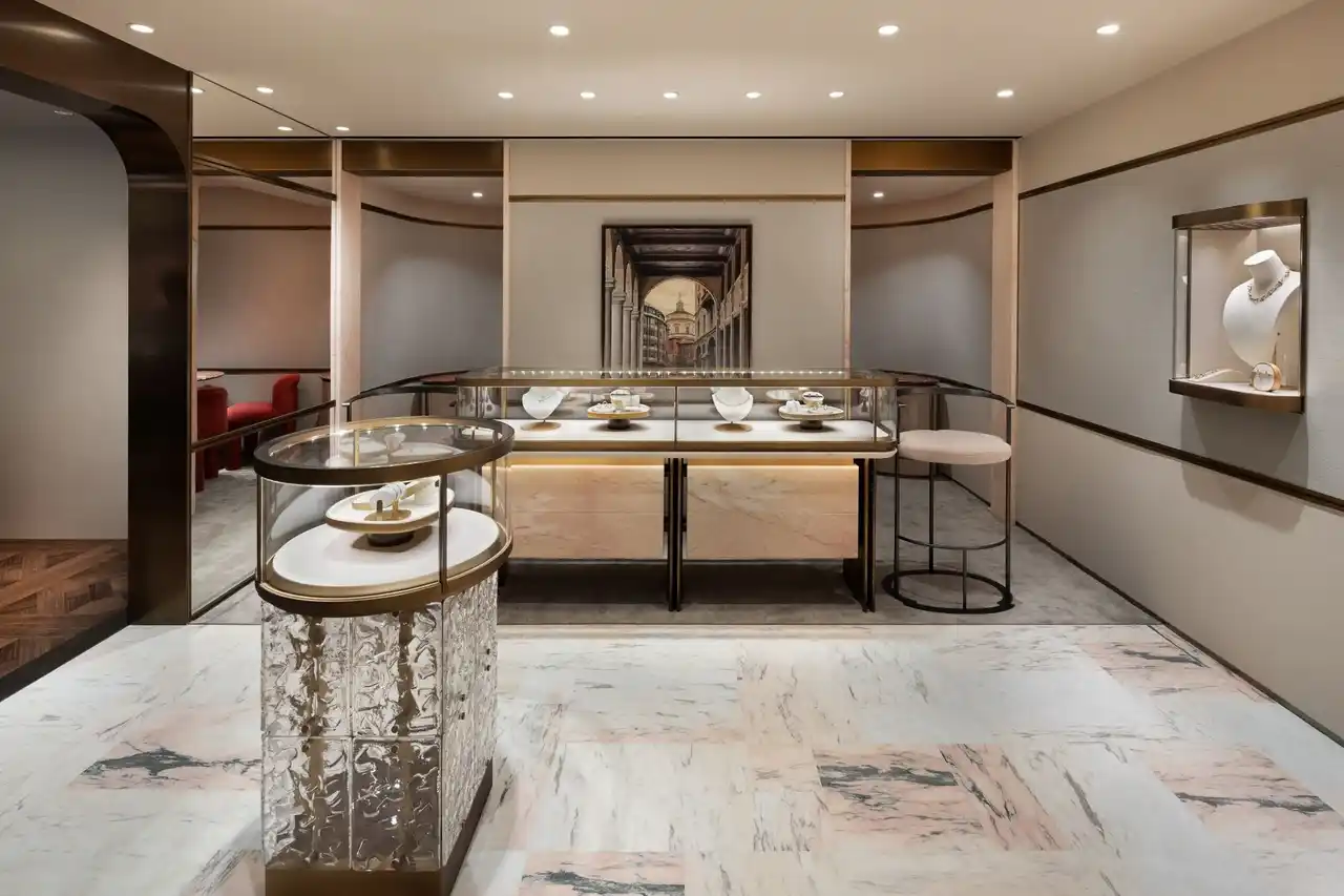 | ブティックは発見と会話を促すよう設計され、ジュエリーを手に取り、その魅力を五感で楽しむことができます。よりプライベートな体験のために、VIPルームも完備しております。静謐で居心地の良いこの特別な空間では、色彩に満ちた「ヌード」から、金細工技術の職人技が光る「イコニカ」まで、ポメラートのハイジュエリーとアイコニックなコレクションを心ゆくまで堪能いただけます。 | |||