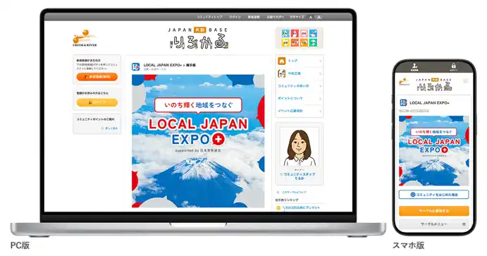 | プロフェッショナル・エージェンシー事業を展開する株式会社クリーク・アンド・リバー社(以下C&R社)は、オンラインコミュニティの構築および運営・コンサルティングを行うクオン株式会社と共同で運営するAIファンコミュニティモール「JAPAN共創BASE りろかる」内に、全国の自治体と生活者をつなぐオンライン共創コミュニティ「LOCAL JAPAN EXPO+ supported by 日本首長連合*」(以下LOCAL JAPAN EXPO+)をオープンいたしました。なお、本取り組みは、C&R社と全国の650を超える基礎自治体の集まりである日本首長連合との包括連携協定にもとづく取り組みです。 | |||