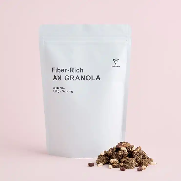多様な種類の微生物をたくさん腸で育てることが、健康にとってとても重要であることが明らかになってきました。FUN FIBERのあんグラノーラなら、オート麦、小豆、玄米、くるみ、アガベなど、多様な食物繊維素材を腸に届けて、多様な微生物に栄養を与えます。
