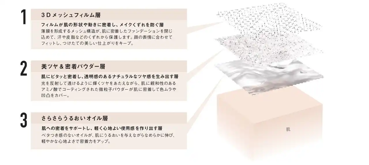 | とびきり軽いのにピタッと密着、くずれにくい! 3層の美肌フィルターの秘密を深堀り | ||||||||||||||||