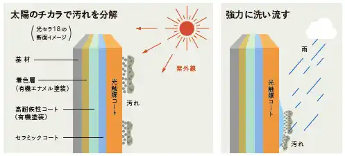 ・色40年品質に光触媒の機能で汚れを落とす高性能外壁材 |