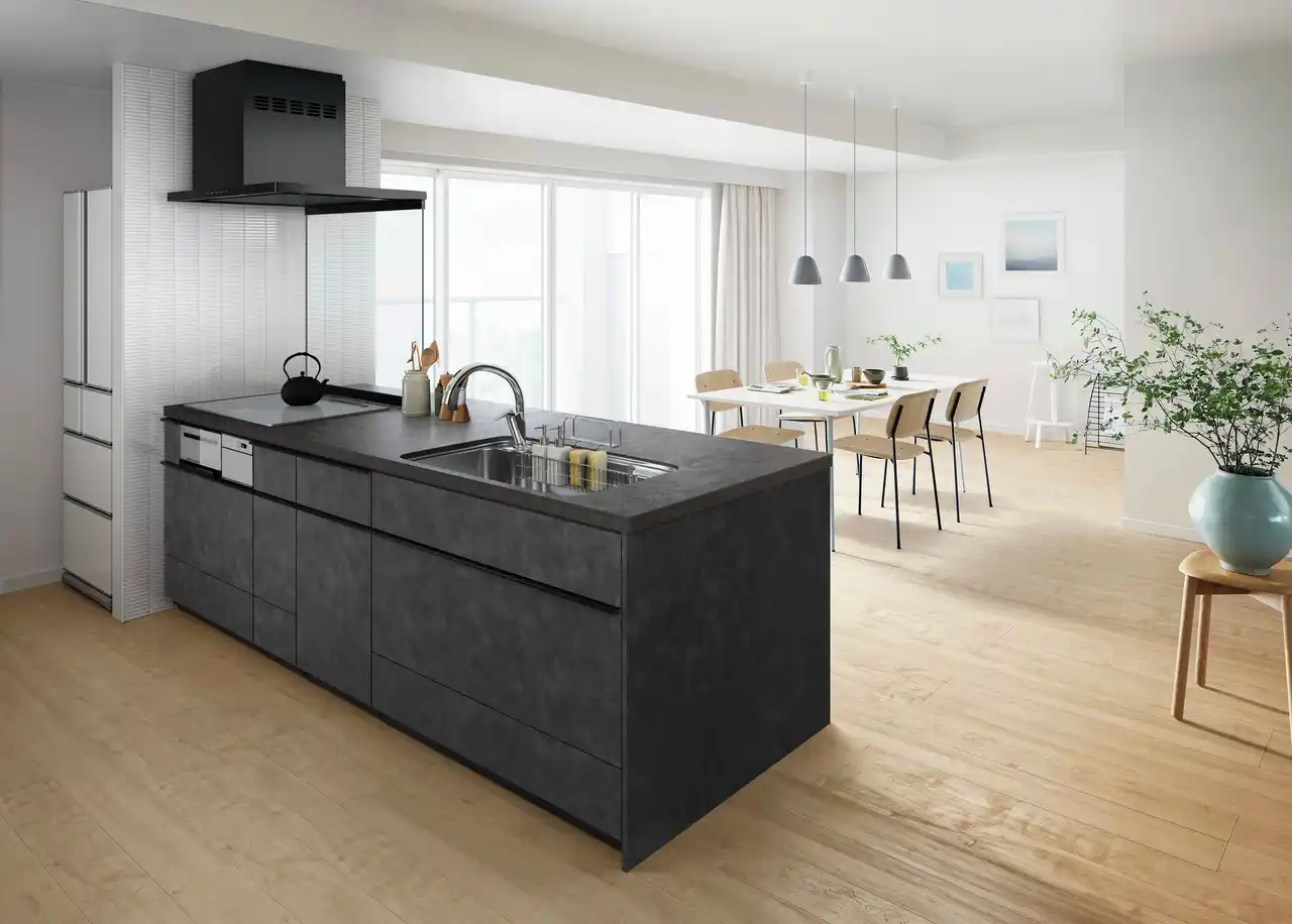 熱にも傷にも汚れにも強く、美しさを長く保てる理想的なワークトップのセラミックトップやタッチレス水栓、フロントオープン食洗器、使いやすさと収納量を両立した「らくパッと収納」などを標準装備しています。 |