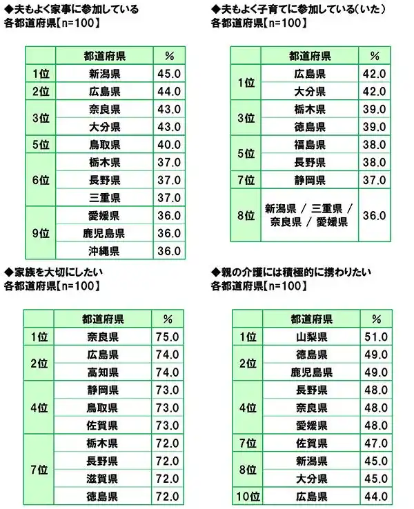・「新潟県」 “家事メンが多い”1位、「広島県」「大分県」 “イクメンが多い”1位 |