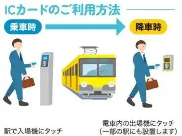 定期券区間内では、乗車時と降車時に各駅または、電車内に設置している入出場機にタッチすることでご乗車いただけます。 |