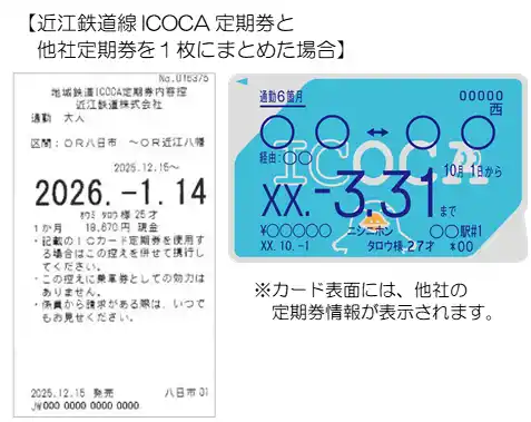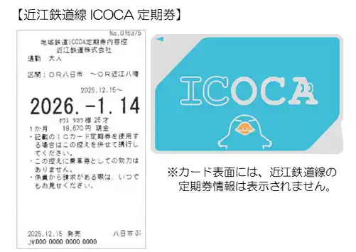 さらに、近江鉄道線の定期券とJR西日本の定期券を1枚のICOCAでご利用いただくことができます。 |