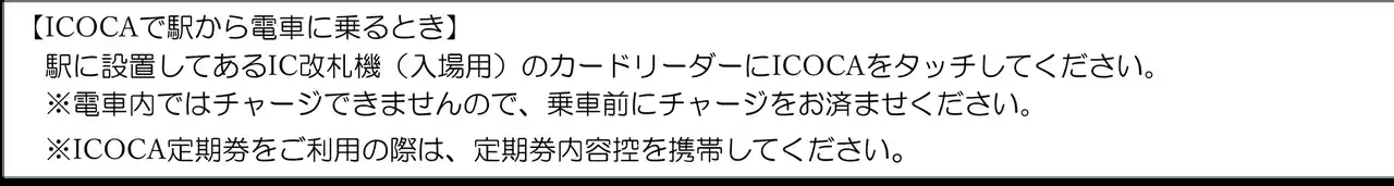 ※ICOCAカードまたはモバイルICOCAが必要となります。 |