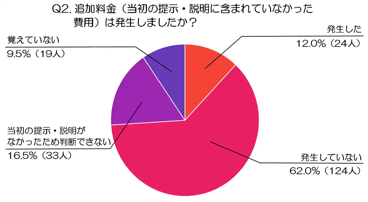 Q2.追加料金(当初の提示・説明に含まれていなかった費用)は発生しましたか? |