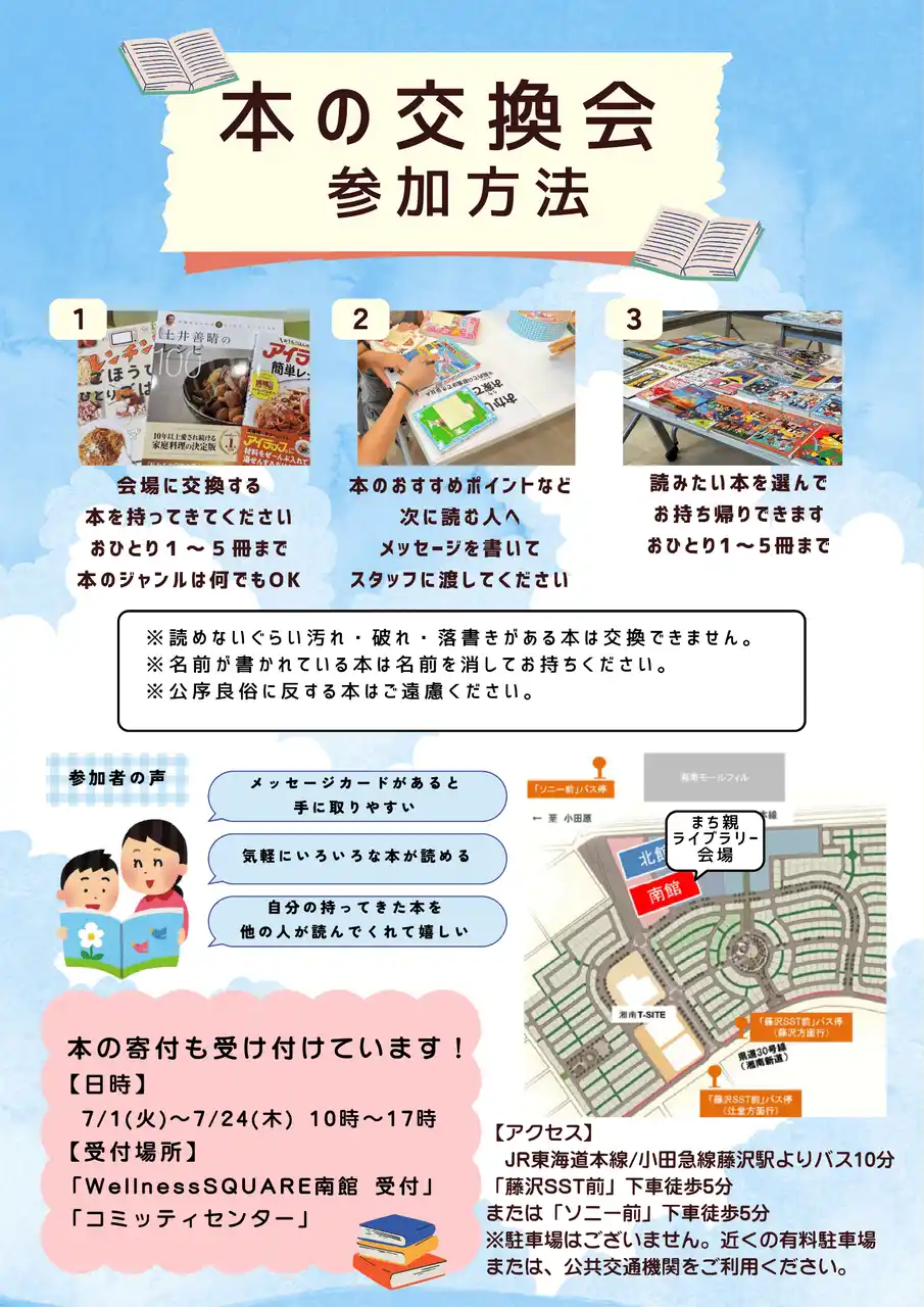 | 「まち親ライブラリー」は本を通じて地域交流の場を創出することを目的にしており、Fujisawa SSTにお住まいの方はもちろん、周辺地域の方々もご参加いただけるイベントです。 | |||||||||