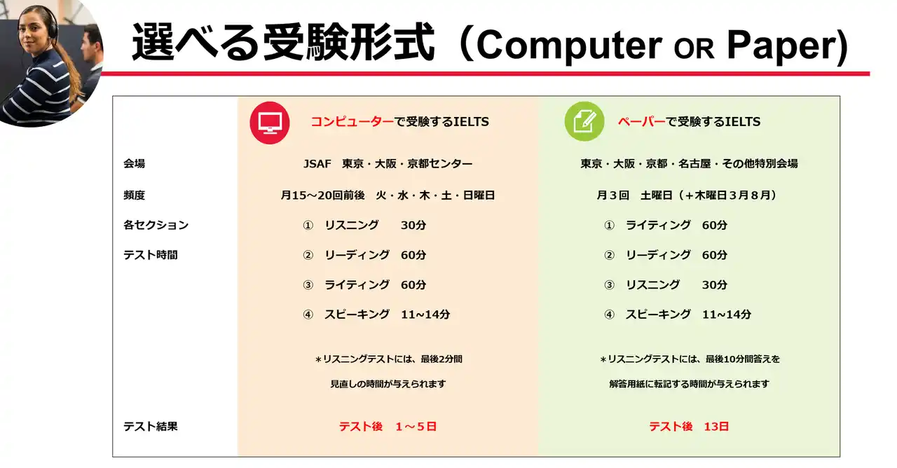 | これにより、IELTSの受験機会拡大とともに、より柔軟で利便性の高い受験環境を全国的に整備してまいります。 | |||||||||||||||