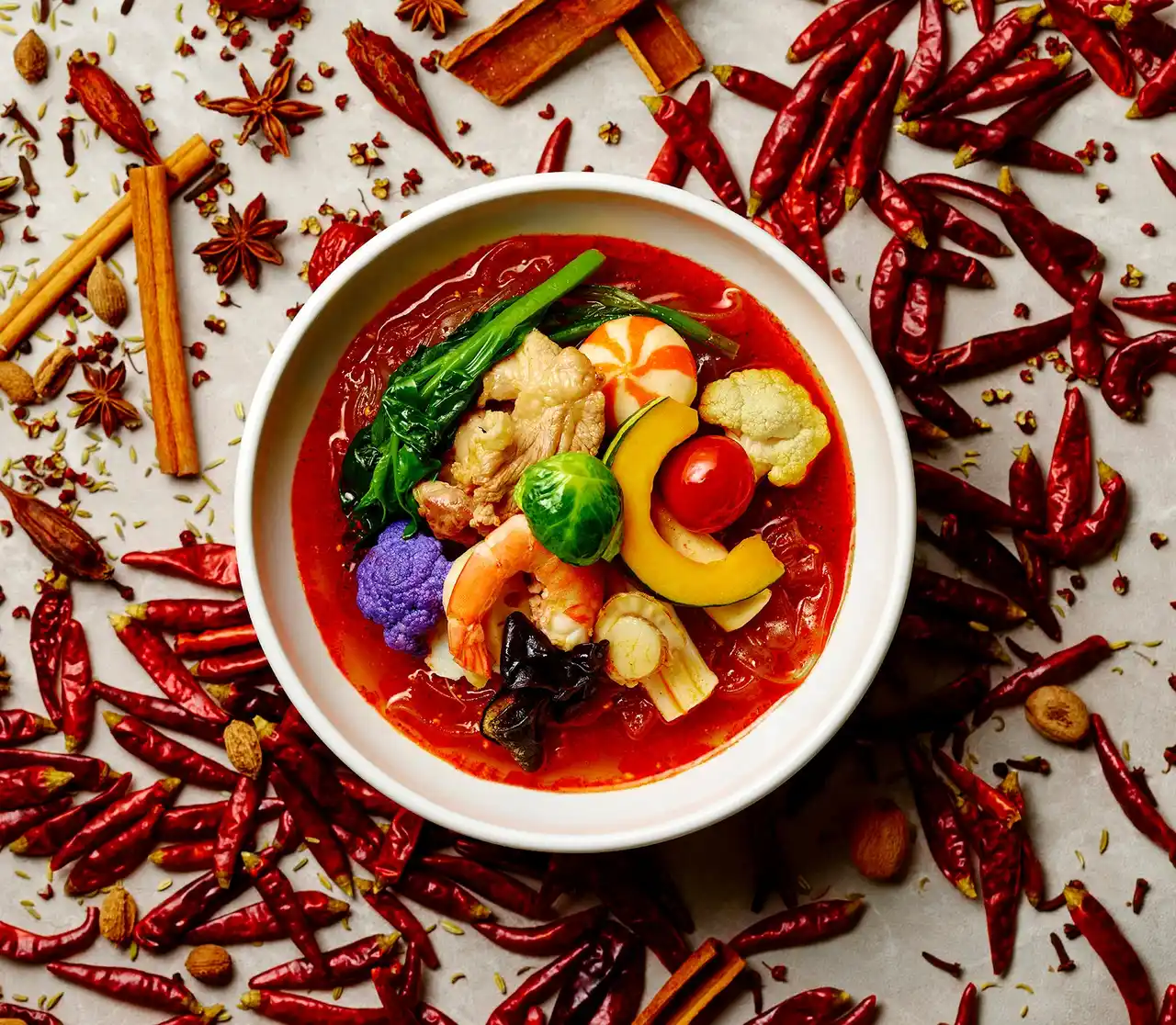 『医食同源』『身土不二』がテーマの『菜彩麻辣湯』より花椒の鮮烈な香りと舌に残るようなシビレ、唐辛子のキレのある辛さを重ね、刺激と旨みのバランスがクセになる麻辣の魅力を凝縮した麻辣に麻辣を重ねた『麻辣麻辣』メニューが新登場! |