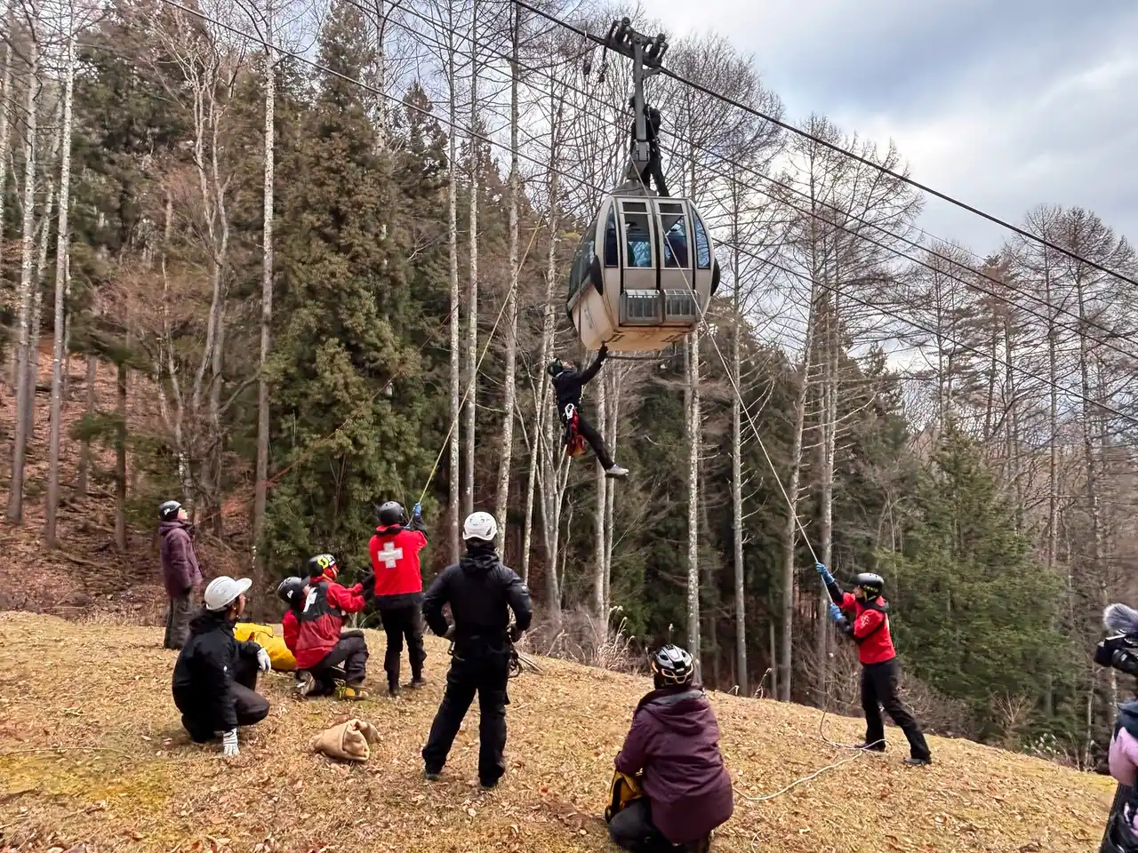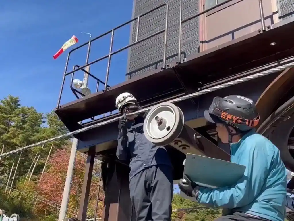 当リゾートでは、日々の安全を確保するため、営業前の朝礼や索道設備の安全点検を欠かさず実施しています。 朝礼では、その日の運行状況や注意点を全スタッフで共有し、設備の点検については複数人で確認を行い、結果を正確に記録・共有しています。 また、点検技術の継承やゴンドラ救助訓練などにも継続して取り組み、万一の事態に備えた対応力の強化を図っています。 |