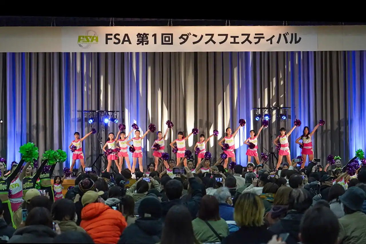当日はチアダンスやヒップホップ・ジャズ・K-POPなどFSAダンススクールが展開する計8ジャンルの多彩な演目が約2時間超に渡って披露され、会場には大きな拍手と歓声が響き渡りました。客席にはご家族や友人、地域の皆様が集い、子どもたちの努力と成長を温かく見守る、笑顔あふれる一日となりました。 |