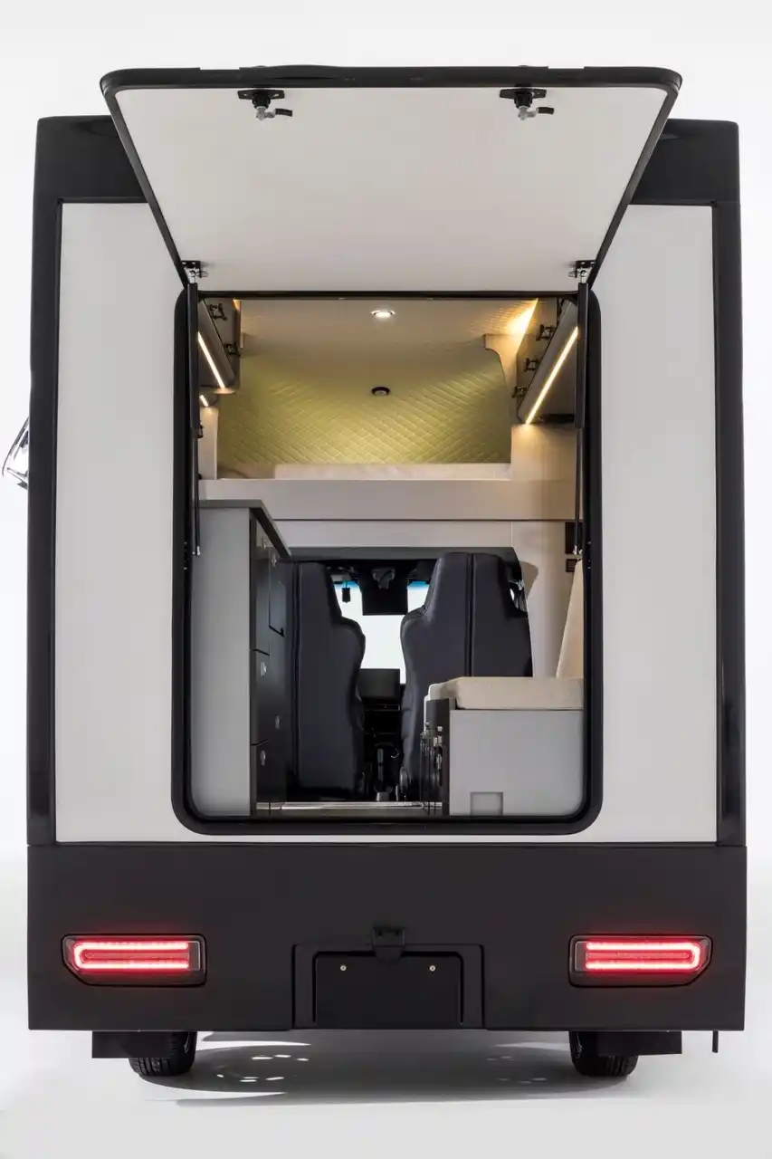 PLATの後方には大きく開くリアハッチを採用。 大きな荷物の出し入れがしやすいだけでなく、キャンプ地では開け放って外とつながる“アウトドアリビング”としても活躍します。 ベッドスペースやキッチンからのアクセスもスムーズで、使い勝手と開放感を両立した設計です。 |