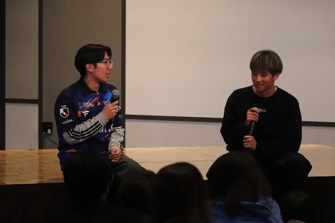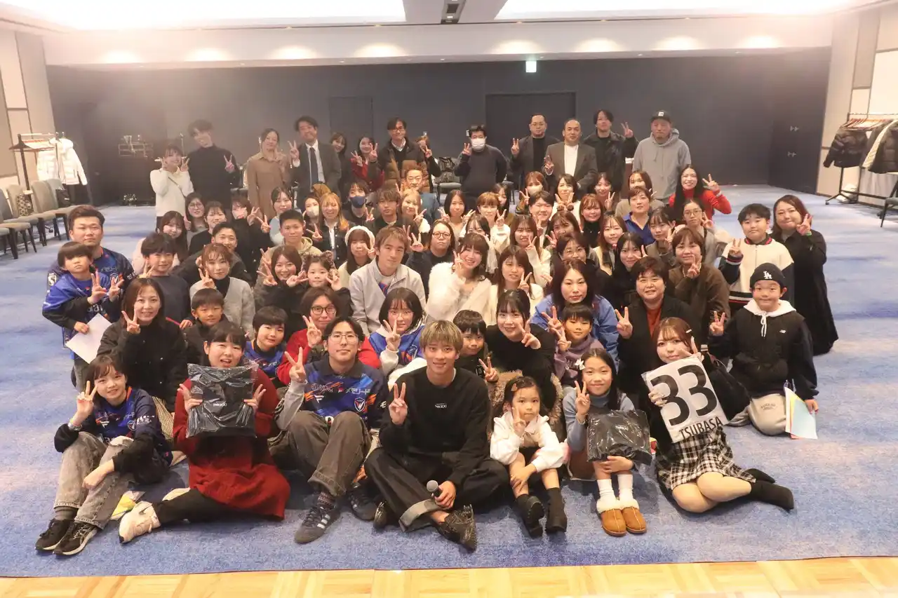 ⚫︎参加者からの質問コーナーでは、笠柳選手が本音で回答。ピッチ上の鋭い表情とは異なるリラックスした笑顔を見せ、最後は参加者全員とのサイン・写真撮影を行い、深い絆を確かめ合いました。 |