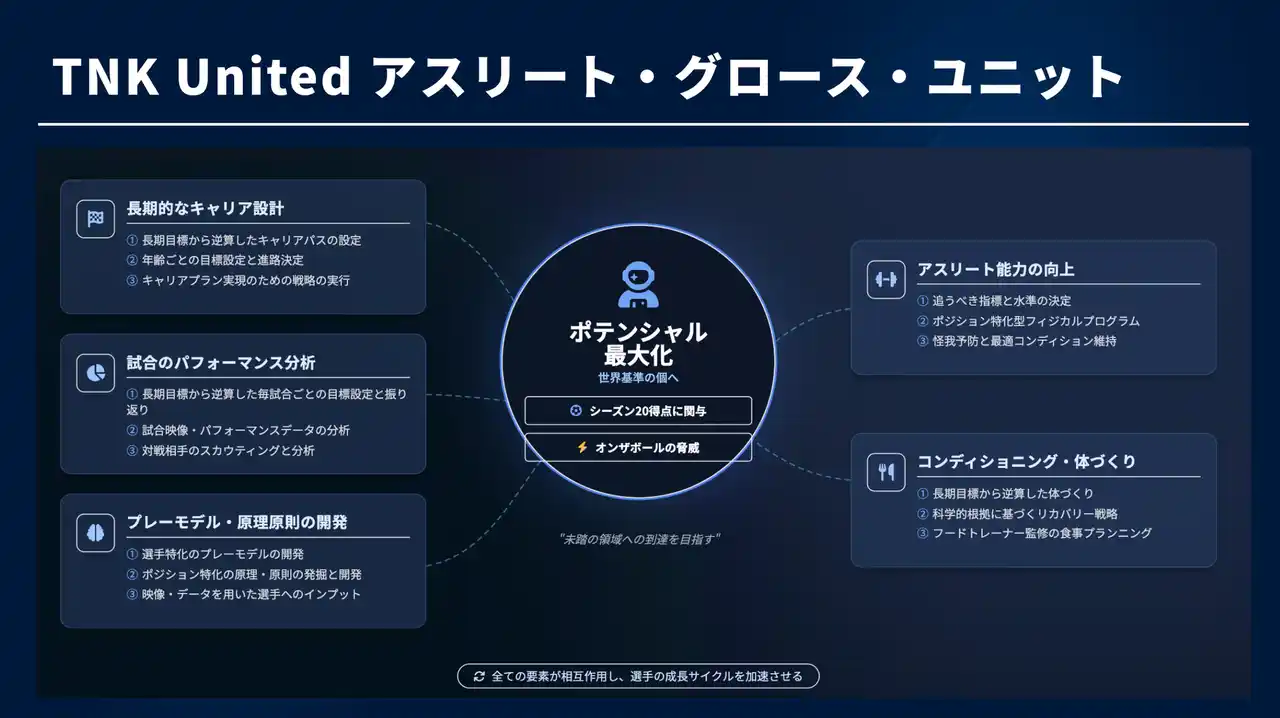 日本初プレイヤーフォーカスのアスリート・グロース・ユニットを組成。 |