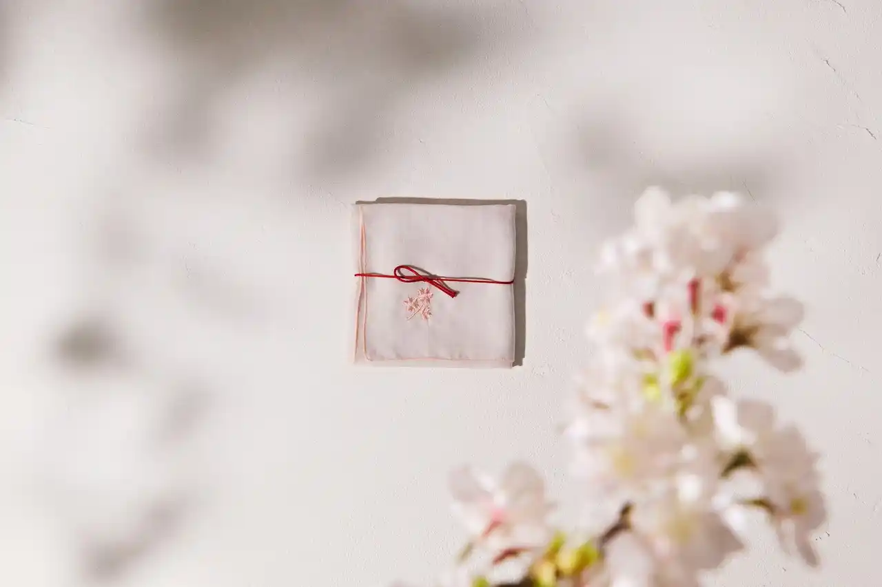 やわらかな日差しのあたたかさに思わず外へ出かけたくなる季節に向けて、特別なデザインのハンカチをご用意しました。新しい文化継承のかたち・刺繍の可能性を考える刺繍ブランド「京東都」と共に製作しました。吸水性と保湿性に優れたやわらかなガーゼ素材を使用し、心地良い肌触りに仕上げています。ボトルロゴと、淡いピンクの刺繍糸で表現した桜のモチーフを組み合わせたデザインは、春らしいあたたかみを添え、カフェでのひとときやお散歩の時間など日常のさまざまなシーンで季節を感じさせてくれます。日本ならではのお土産や季節のギフトにもおすすめの一枚です。 |