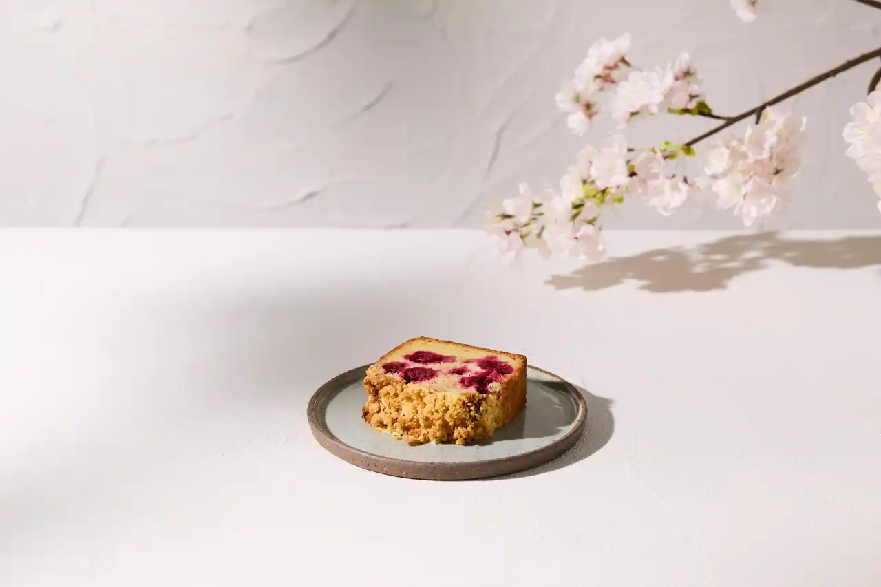 桜の季節のコーヒータイムに合わせた、春限定のパウンドケーキが登場します。サワークリームを使用した生地は、コクのある風味としっとりとした口溶けが特徴で、主役であるチェリーの甘酸っぱさをより鮮やかに引き立てます。バターとレモンゼストが香るクランブルをトップに重ねることで、食感のコントラストとともに、春らしい軽やかな余韻を表現しました。この時期限定のチェリーブロッサムラテはもちろん、お好みのコーヒーと共に、春のやわらかな日差しを感じながらお楽しみください。 |