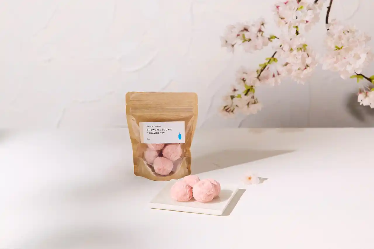 いちごのやさしいピンク色が春の訪れを感じさせる、季節限定のスノーボールクッキーをご用意しました。風味豊かなバターとアーモンドパウダーを合わせた生地は、口の中でほろりとほどけるような、軽やかでやさしい食感が特徴です。砕いたマカダミアナッツの香ばしいカリッとした口当たりが、味わいに心地良いアクセントを加えます。外側にまとわせた甘酸っぱいいちごの香りと、内側に広がるナッツとバターのコクが調和する洗練された味わいに仕上げました。ころんとした可愛らしい形と春らしい彩りは、季節の贈り物やお手土産にもおすすめの一品です。 |