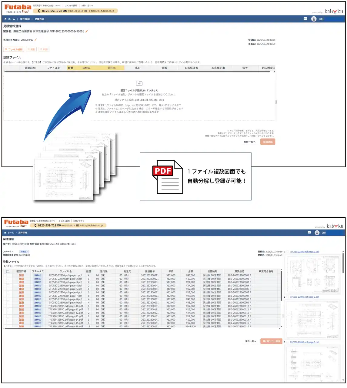 ・ PDF図面やCADデータ等のアップロードによる見積・発注依頼 |