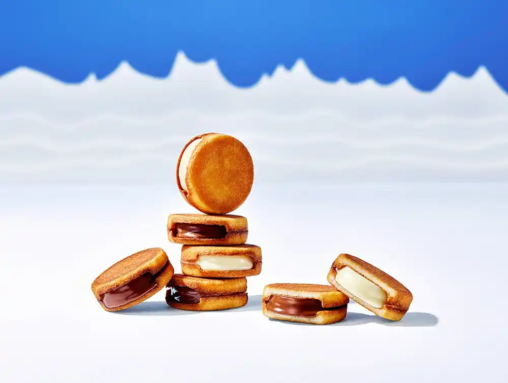 累計販売2,000万枚突破! 北海道で作られる冬の風味豊かで濃厚な放牧牛乳を使用した、新食感の生チョコレートサンドクッキー「スノーサンド」 |