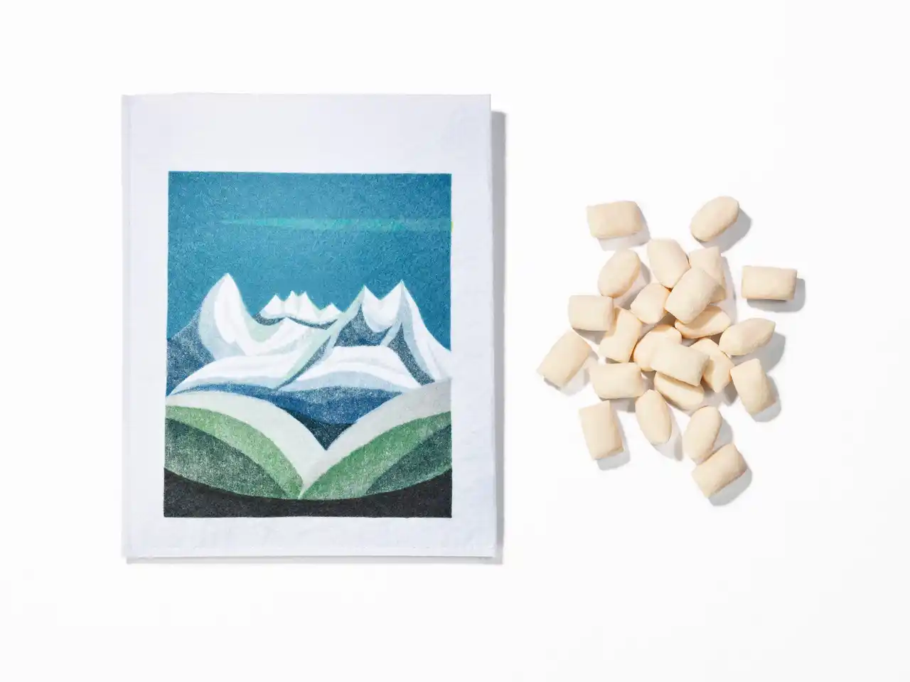 SNOWSは、パッケージデザインにもブランドのこだわりが込められています。 雪や山を想起させ、どこか懐かしさを感じさせるパッケージには、“山の版画家”大谷一良さんの作品を使用しています。 |