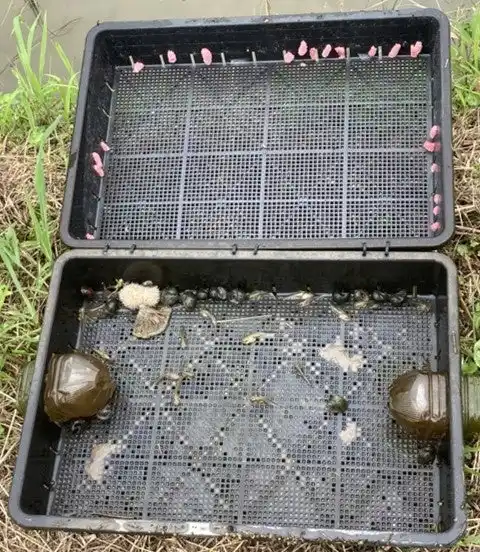 タニシに関しては大型の捕獲器、卵については小型の捕獲器が多く捕獲しました。 |