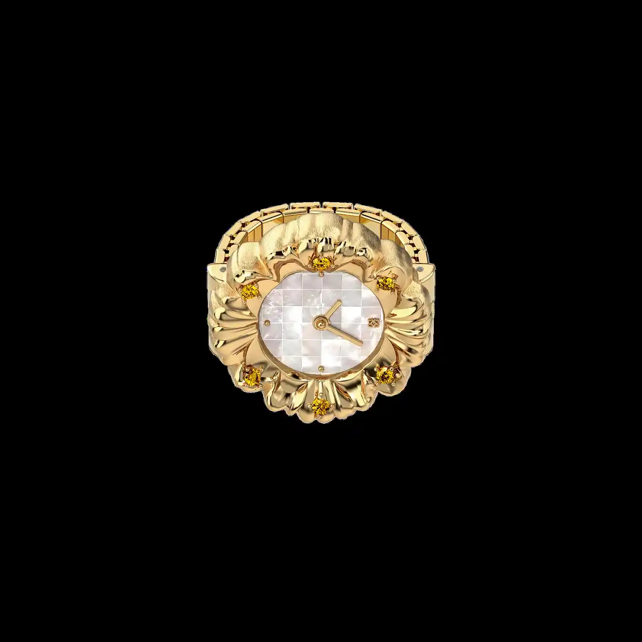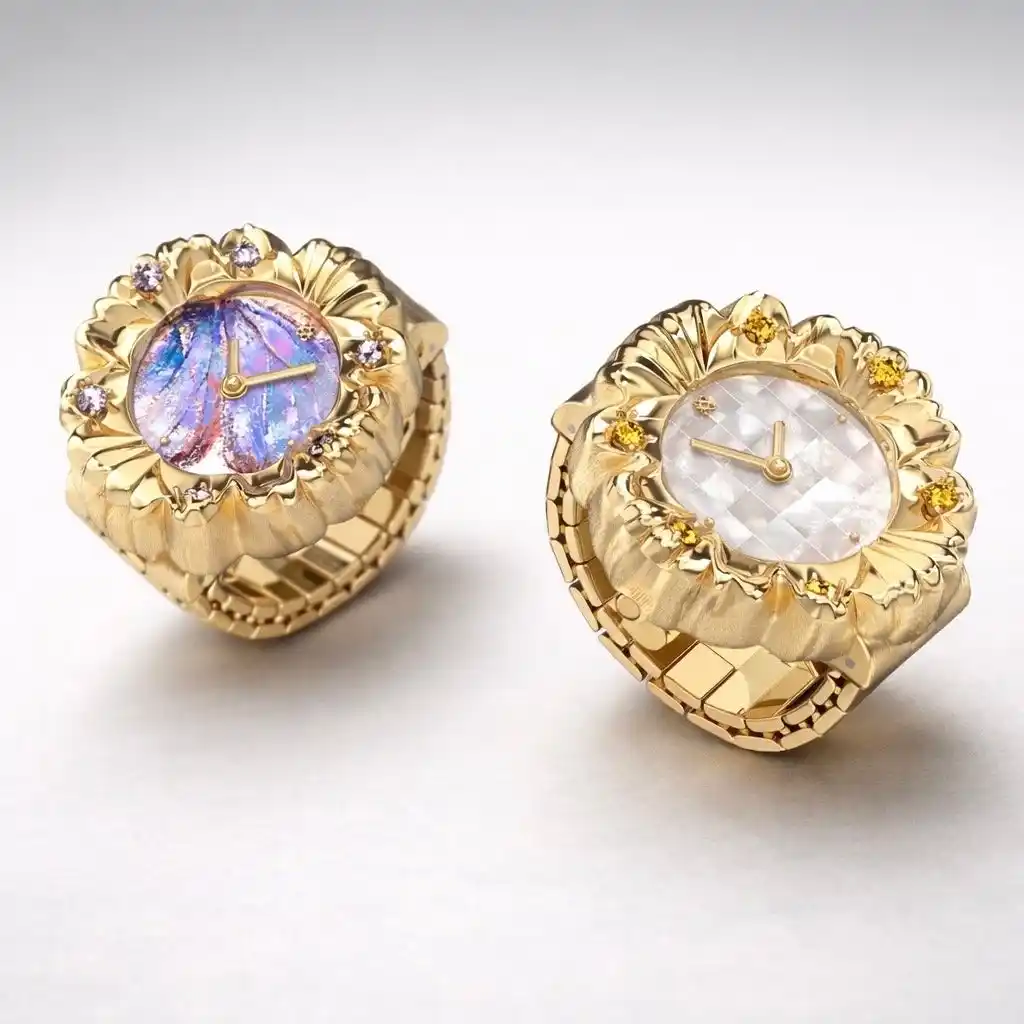 | 「Baroque Watch Ring」は、クラシカルな建築様式に見られる造形や装飾を、指輪サイズのミニチュアウォッチとして落とし込んだコレクションです。PC21クオーツムーブメントを搭載し、コンパクトなサイズながら時間の確認ができる実用性も備えています。 | |||||||||